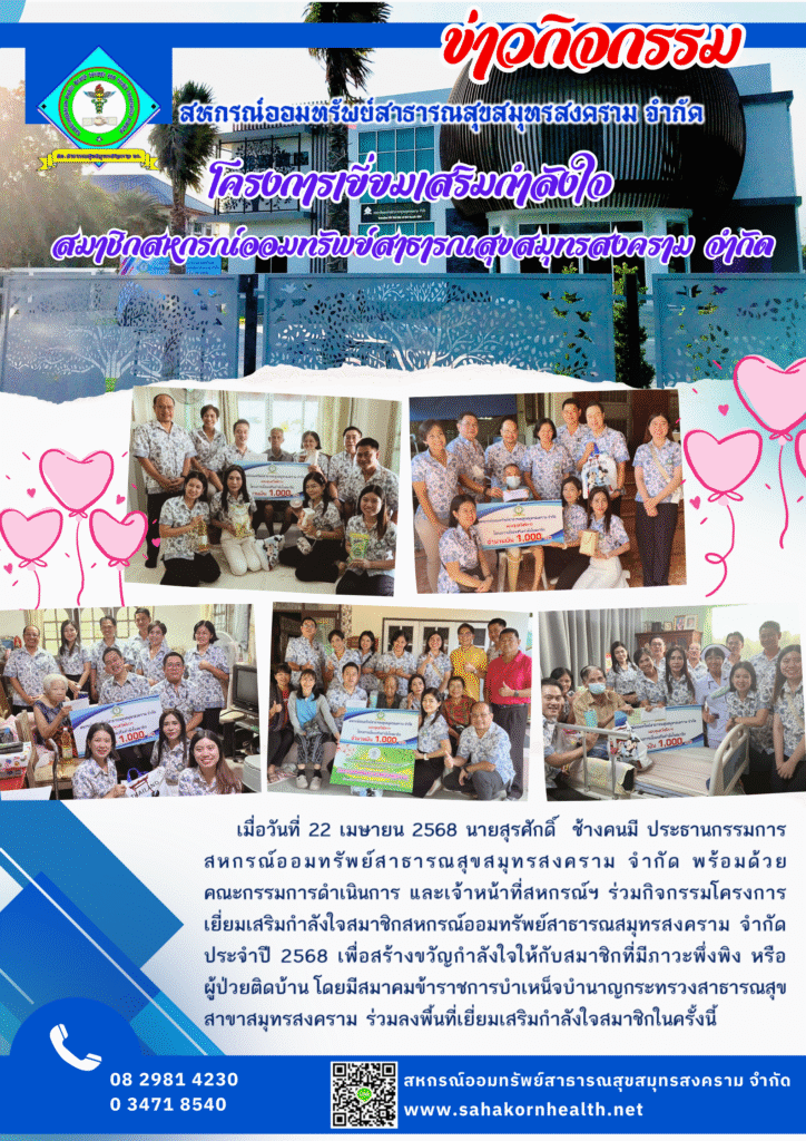 โครงการเยี่ยมเสริมกำลังใจสมาชิกสหกรณ์ออมทรัพย์สาธารณสุขสมุทสงคราม จำกัด