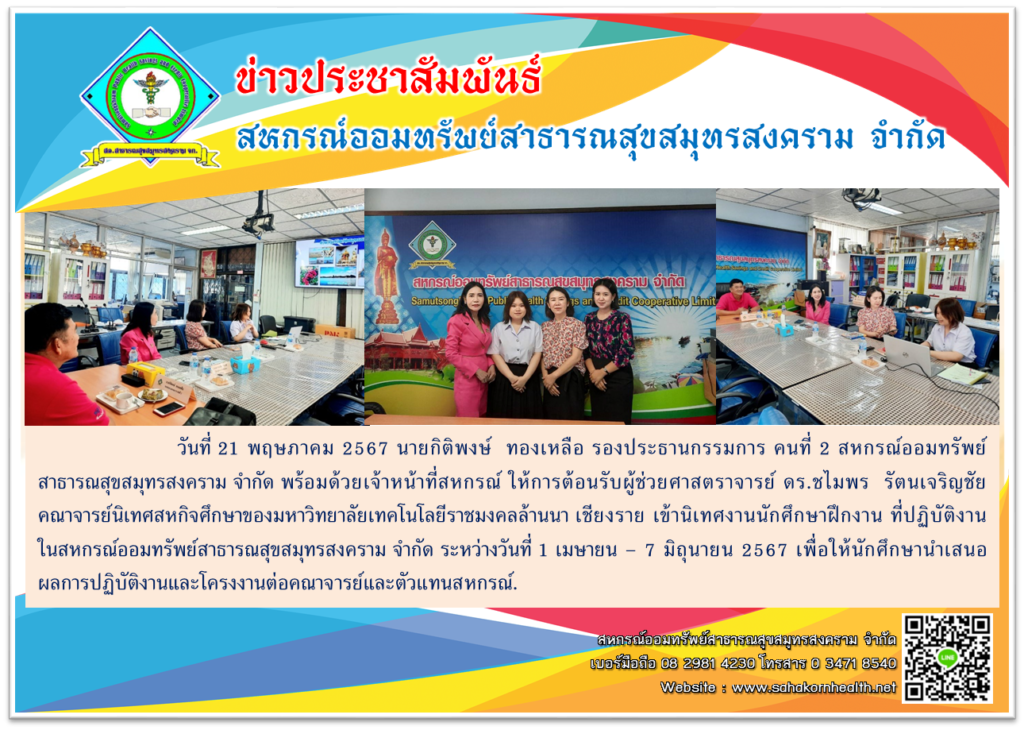 เข้านิเทศงานนักศึกษาฝึกงาน ที่ปฎิบัตงานในสหกรณ์ออมทรัพย์สาธารณสุขสมุทรสงคราม